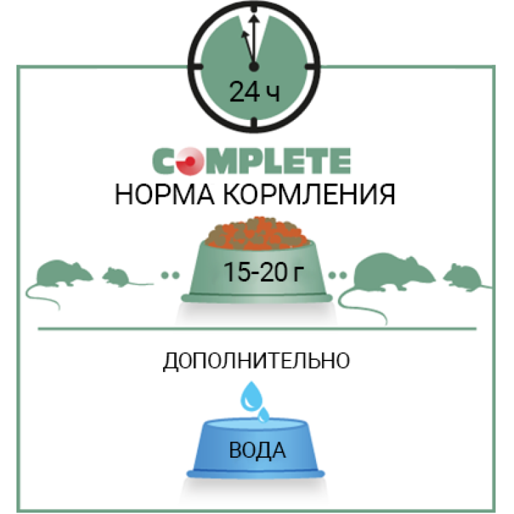 Complete Rat & Mouse обладает сбалансированным составом питательных веществ, витаминов и минералов, необходимых для поддержания оптимальной формы и здоровья вашего грызуна. Он содержит все необходимые элементы для здоровой пищеварительной системы, укрепления иммунной системы и поддержания здоровой кожи и шерсти.