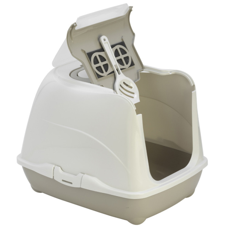 Закрытый туалет для котов изготовлен из качественного пластика, который не впитывает запахи, легко моется, имеет длительных срок эксплуатации.