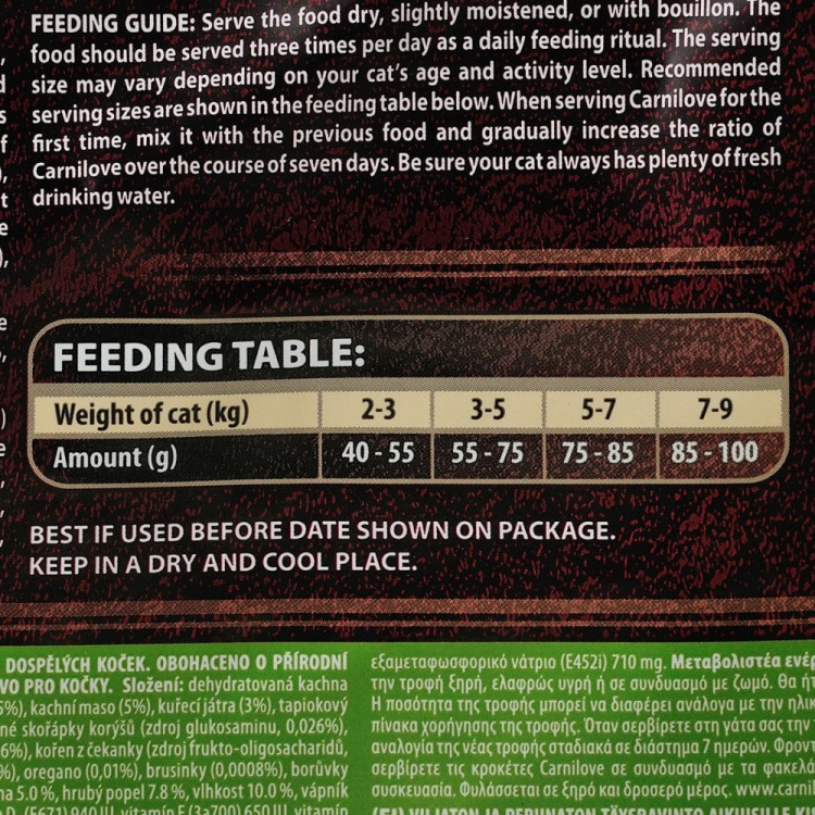 Хранение: хранить при температуре от 0 до +250С и относительной влажности воздуха не более 80%. После вскрытия пакет с кормом необходимо плотно закрывать.