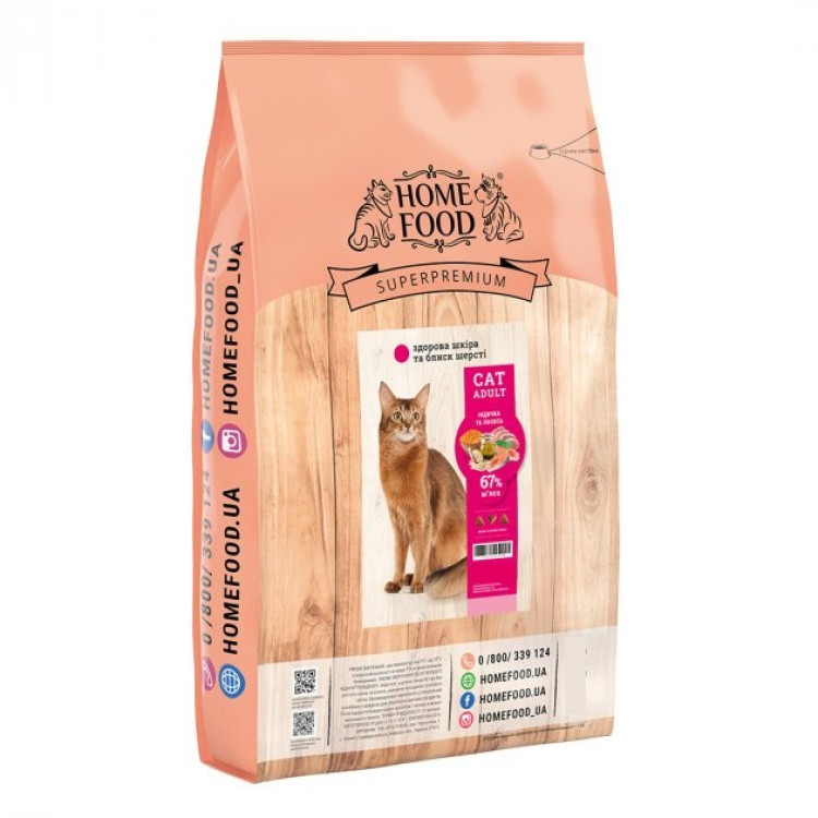 Home Food (Хоум Фуд) Cat Adult - Сухой корм для котов для поддержки здоровья кожи и шерсти с индейкой и лососем