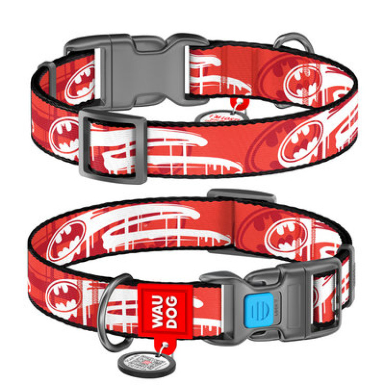 Ошейник WAUDOG Nylon c QR паспортом, рисунок "Бэтмен" DC Comics, пластиковый фастекс