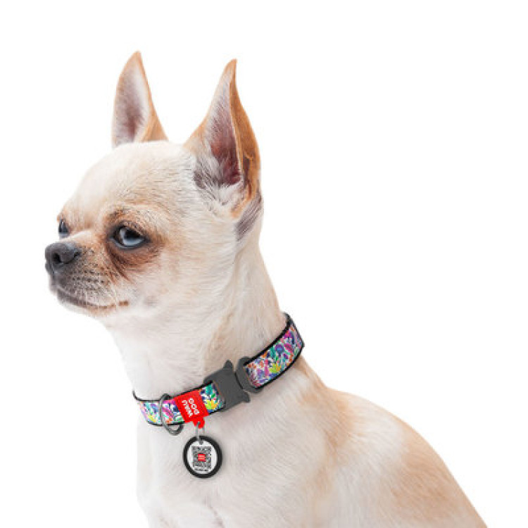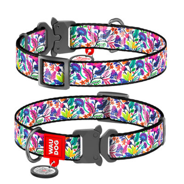 Ошейник WAUDOG Nylon с QR паспортом, рисунок "Волшебные цветы", металлическая пряжка-фастекс