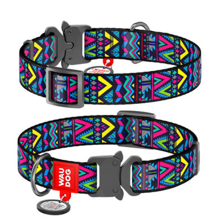 Ошейник WAUDOG Nylon с QR паспортом, рисунок "Инди", металлическая пряжка-фастекс