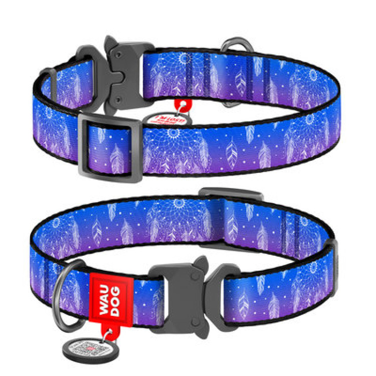 Ошейник WAUDOG Nylon с QR паспортом, рисунок "Ловец снов", металлическая пряжка-фастекс