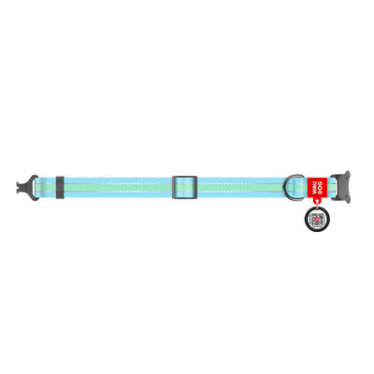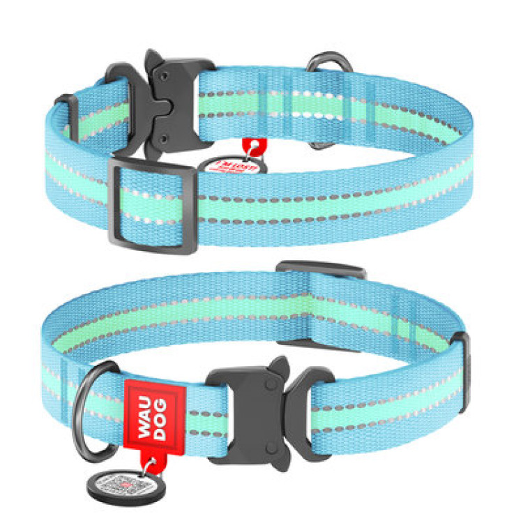 Ошейник WAUDOG Nylon с QR паспортом, светонакопительный (светится в темноте), металлическая пряжка-фастекс, размер L (35-58 см), ширина 25 мм