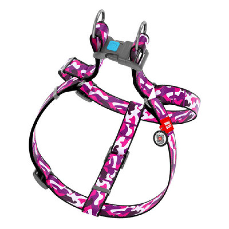 Шлея WAUDOG Nylon с QR паспортом, рисунок "Розовый камо"