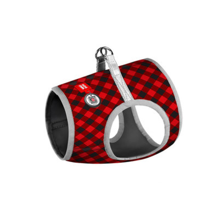 Шлея, "Шотландка красная", ОГ 28-31 см, ОШ 20-22 см, XS2, WAUDOG Clothes c QR