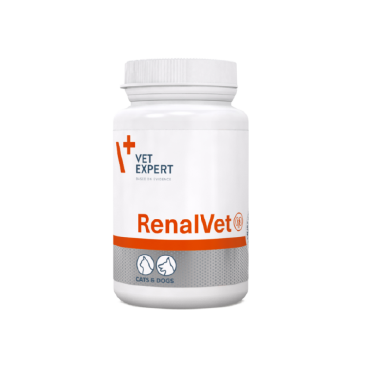 Vet Expert RenalVet (Вет Эксперт РеналВет) – пищевая добавка для кошек и собак, у которых диагностирована хроническая болезнь почек. Фосфорхелатирующий агент эффективно снижает абсорбцию фосфора из желудочно-кишечного тракта и уровень фосфора в сыворотке крови, уменьшает концентрацию паратгормона и экскрецию фосфора с мочой. Кроме того, добавка предотвращает развитие дефицита витамина D, очень вкусна и идеально подходит для животных, страдающих потерей аппетита – наиболее частого симптома почечной недостаточности и уремии.