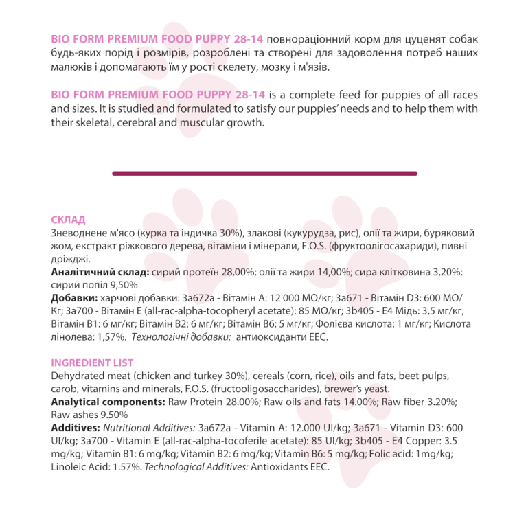 Bio Form (Био Форм) Premium Food Puppy – Сухой корм для щенков с курицей и индейкой
