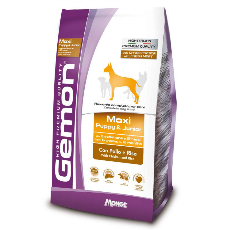 Gemon Dog Maxi Puppy & Junior Chicken & Rice - это сухой корм, специально разработанный для щенков и юниоров (от 6 недель до 12 месяцев) крупных пород. Этот корм обеспечивает вашего молодого питомца всеми необходимыми питательными веществами для здорового роста и развития.