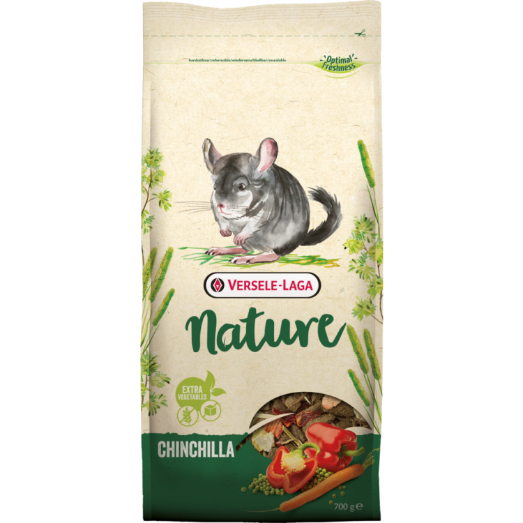 Versele-Laga Nature Chinchilla збагачений вітамінами та мінералами, які необхідні для підтримки загального здоров`я та благополуччя шиншил. Вітамін C, включений до складу, є особливо важливим, тому що шиншили не можуть синтезувати його самостійно і повинні отримувати його ззовні. Він підтримує їх імунну систему та зміцнює сполучні тканини.