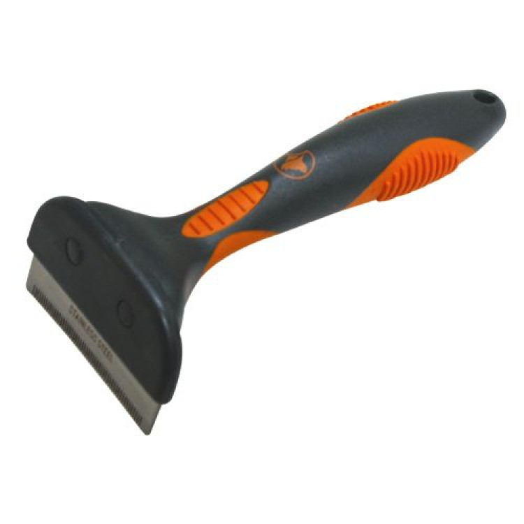 Ергономічна ручка комфортна і проста у використанні. Лезо з нержавіючої сталі глибоко проникає крізь остьовий волос довгої вовни і делікатно видаляє шерсть, що випала, і підшерстя.