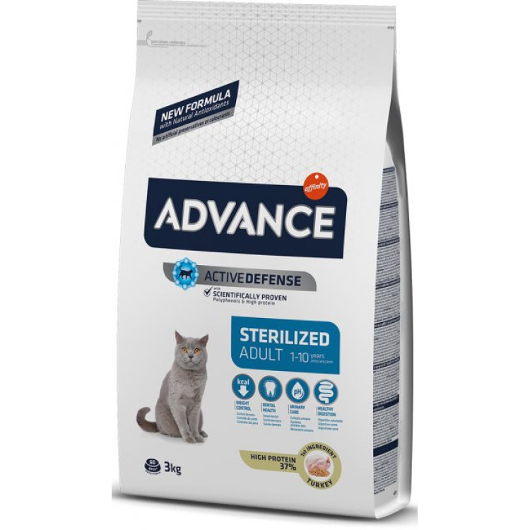 Advance Cat Sterilised Turkey також містить спеціальні добавки, що сприяють контролю ваги. Після стерилізації кішки часто стають схильними до надмірної ваги і цей корм розроблений так, щоб допомогти їм підтримувати здорову масу тіла.