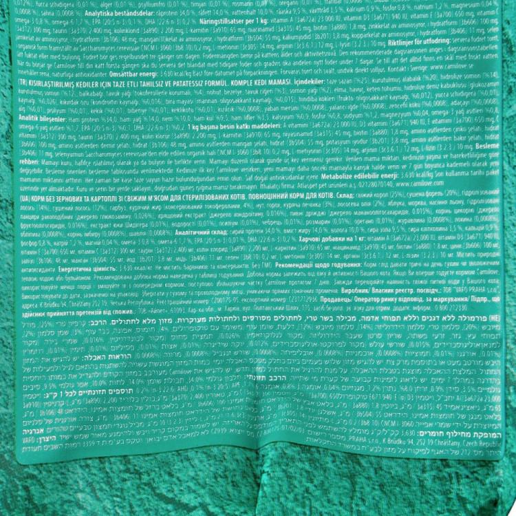 Зберігання: зберігати при температурі від 0 до +25°С та відносної вологості повітря не більше 80%. Після відкриття пакет із кормом необхідно щільно закривати.