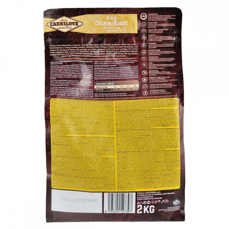 Carnilove Cat Fresh Chicken & Rabbit Gourmand - це харчування для дорослих кішок, яке забезпечує їм смачне та поживне харчування, що відповідає їх потребам. Цей корм допоможе їм залишатися здоровими та енергійними щодня.
