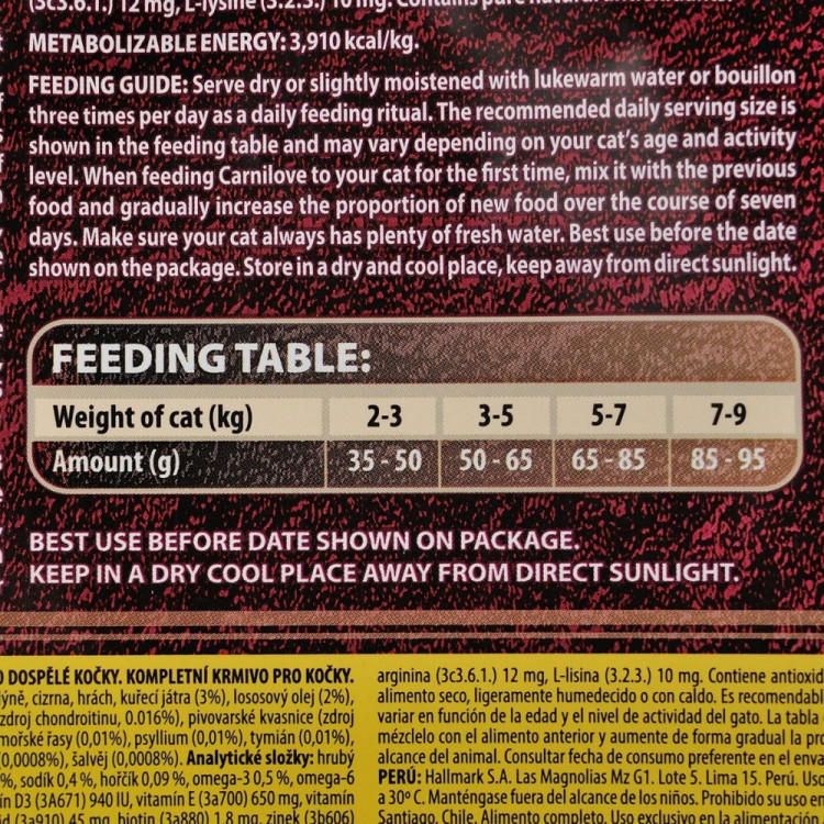 Формула корму розроблена з урахуванням потреб дорослих кішок, забезпечуючи оптимальне співвідношення білків, жирів та вуглеводів. Це допомагає підтримувати здорову статуру та активне життя, а також забезпечує енергією для їх щоденних активностей.