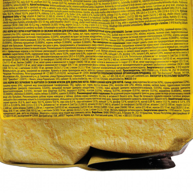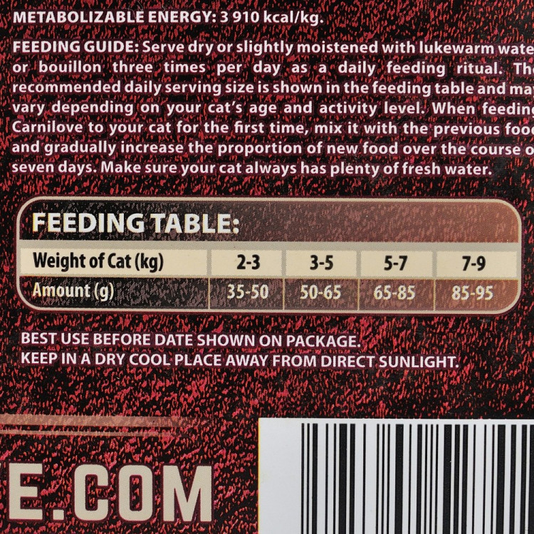 Зберігання: зберігати при температурі від 0 до +25 °С та відносної вологості повітря не більше 80%. Після відкриття пакет із кормом необхідно щільно закривати.