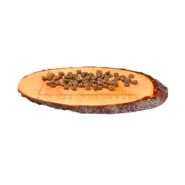 борошно з м\'яса дикого кабана (35%), борошно з м\'яса ягнят вільного випасу (24%), жовтий горох (19%), курячий жир (консервований токоферолами, 6%), яблука (4%), куряча печінка (3%) , крохмаль з тапіоки (3%), риб\'ячий жир лососевий (2%), морква (1%), лляне насіння (1%), нут (1%), гідролізовані раковини ракоподібних (джерело глюкозаміну, 0.026%), екстракт хряща ( джерело хондроїтину, 0.016%), пивні дріжджі (джерело маннанолігосахаридів, 0.016%), корінь цикорію (джерело фруктоолігосахаридів, 0.012%), юкка Шидігера (0.01%),0.0.0,0. ), розмарин (0.01%), материнка (0.01%), журавлина (0.0008%), лохина (0.0008%), малина (0.0008%).