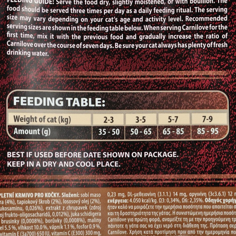 Присутність м`яса північного оленя збагачує корм важливими поживними речовинами, такими як залізо та вітамін В12. Ці компоненти сприяють підтримці здоров`я крові та загального стану кішок.