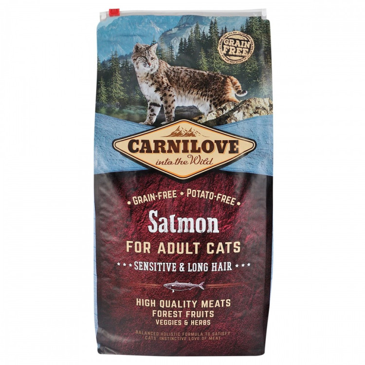 Carnilove Cat Salmon Sensitive & LongHair - це спеціально розроблений сухий корм, призначений для котів з чутливим травленням та довгою шерстю. Основний компонент корму – натуральний лосось, який є високоякісним джерелом білка, необхідного для підтримки м`язової маси та загального здоров`я.