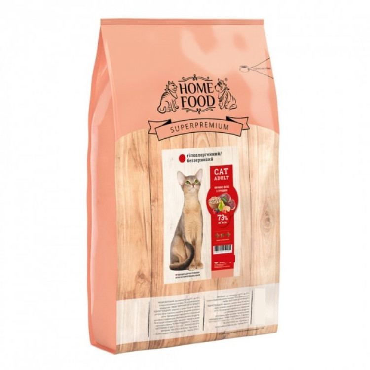 Home Food Cat Adult – це високоякісний гіпоалергенний сухий корм, спеціально розроблений для зрілих кішок. Він забезпечує вашого вихованця всіма необхідними поживними речовинами, підтримуючи його здоров`я та благополуччя.