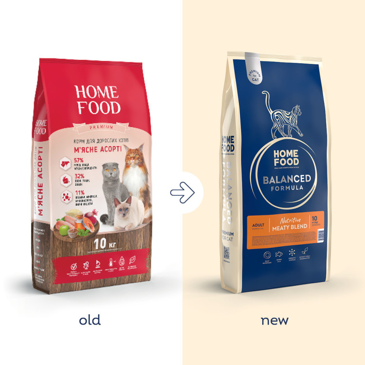 Цей корм - це не тільки їжа, але й турбота про комфорт та щастя вашої кішки. Home Food Cat Adult з м`ясним асорті надає вашій кішці широкий вибір смаків та поживних речовин, збагачуючи її життя та підтримуючи її здоров`я.