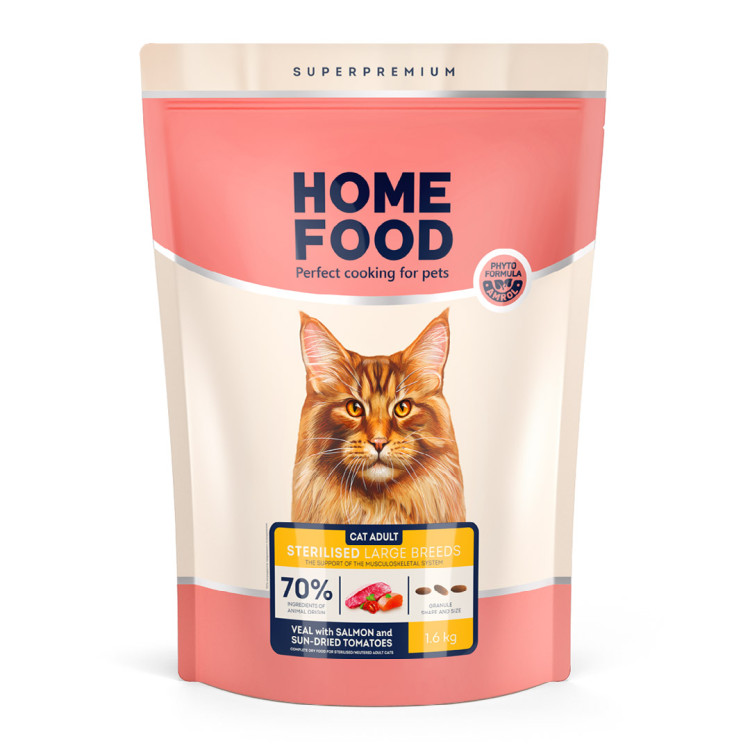Високопротеїновий корм на основі двох видів протеїнів – м’яса телятини та лосося. Ідеально підходить для котів великих порід завдяки потужному вмісту хондропротекторів.