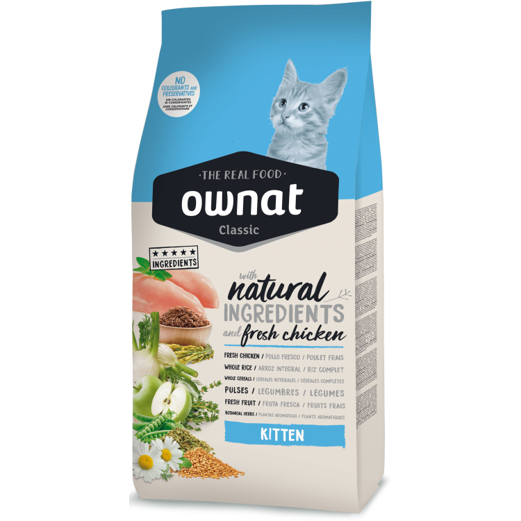 Ownat Classic Kitten Chicken підтримує здоровий розвиток, енергію та життєві сили кошенят. Склад корму заснований на натуральних інгредієнтах та не містить штучних барвників, ароматизаторів та консервантів.