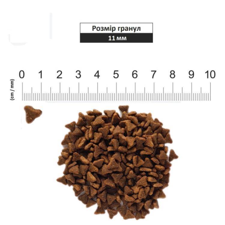 Корм також містить омега-3 та омега-6 жирні кислоти, які підтримують здоров`я шкіри та покращують блиск шерсті, сприяючи загальному гарному стану вашого вихованця.