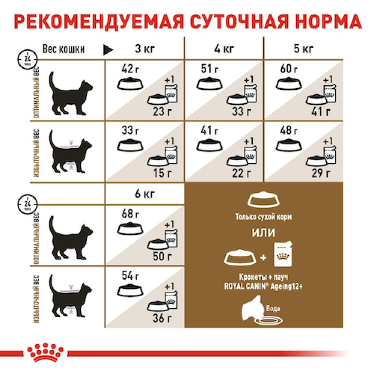 Цей корм - це не тільки смачне харчування, але і ідеальний спосіб забезпечити вашу старіючу кішку всім необхідним для активного, здорового та щасливого життя на протязі похилого віку. Royal Canin Ageing 12+ зробить кожний день вашої кішки комфортним і радісним, даруючи їй любов та догляд, які вона заслуговує.