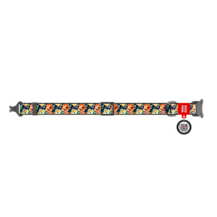 Нашийник WAUDOG Nylon з QR паспортом, малюнок "Гламурні черепа", металева пряжка-фастекс