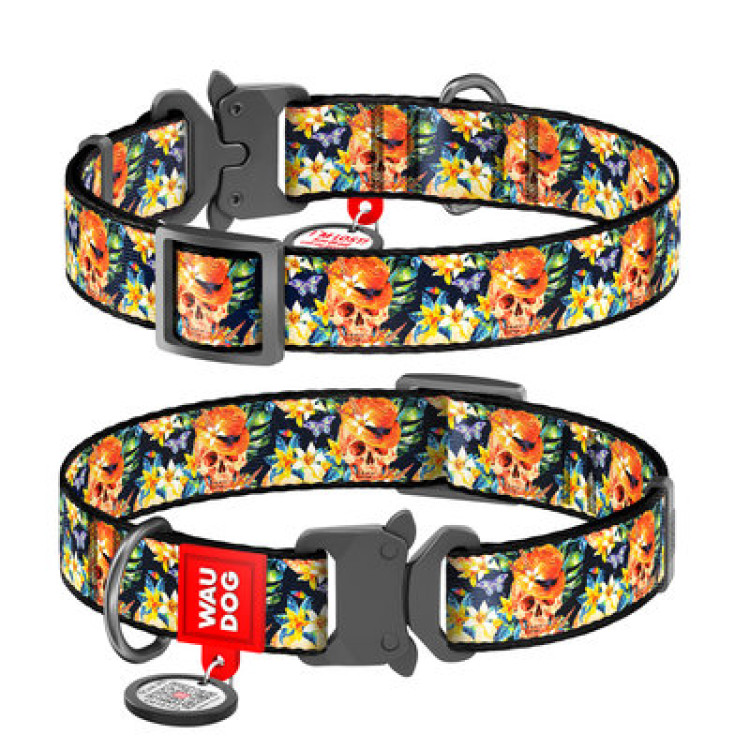 Нашийник WAUDOG Nylon з QR паспортом, малюнок "Гламурні черепа", металева пряжка-фастекс