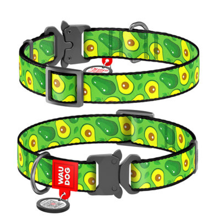 Нашийник WAUDOG Nylon з QR паспортом, малюнок "Авокадо", металева пряжка-фастекс