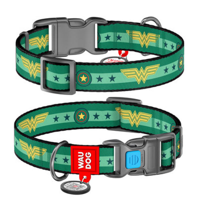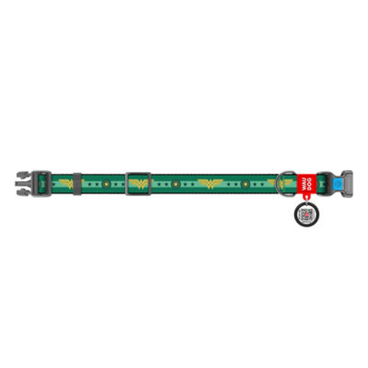 Нашийник WAUDOG Nylon c QR паспортом, малюнок "Диво-жінка 2" DC Comics, пластиковий фастекс
