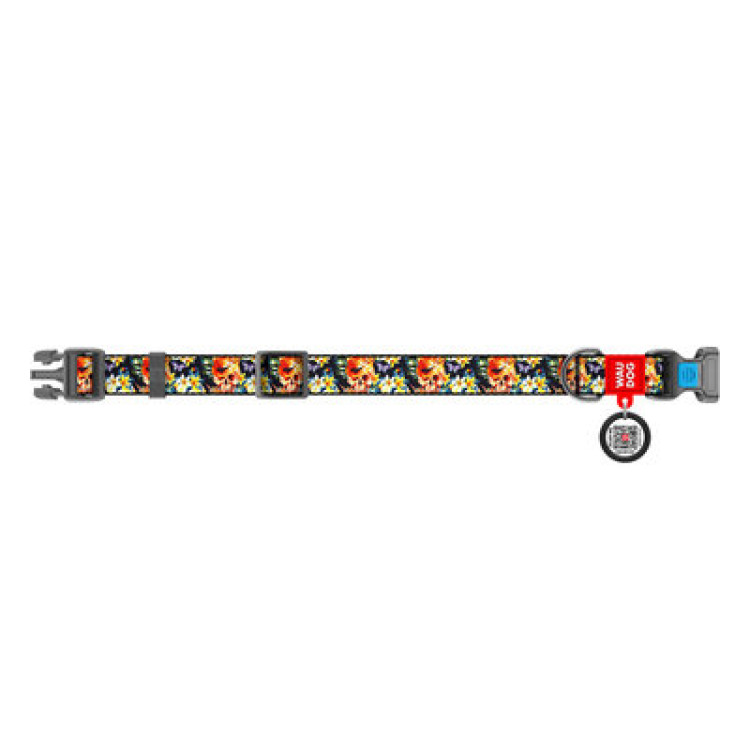 Нашийник WAUDOG Nylon з QR паспортом, малюнок "Гламурні черепа", пластиковий фастекс