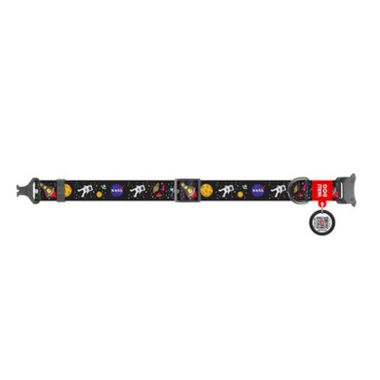 Нашийник WAUDOG Nylon з QR паспортом, малюнок "NASA", металева пряжка-фастекс