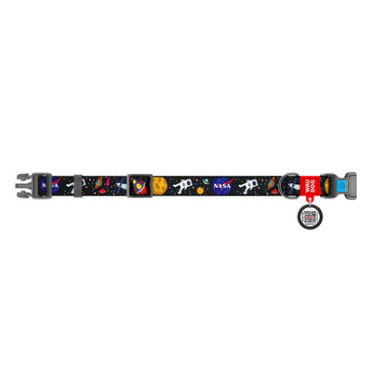 Нашийник WAUDOG Nylon з QR паспортом, малюнок "NASA", пластиковий фастекс