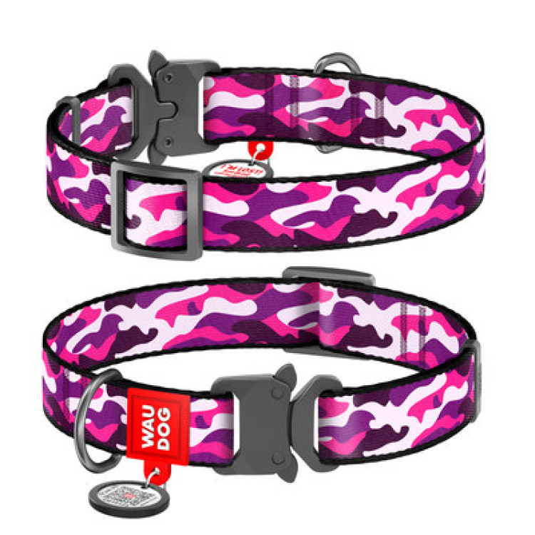 Нашийник WAUDOG Nylon з QR паспортом, малюнок "Рожевий камо", металева пряжка-фастекс