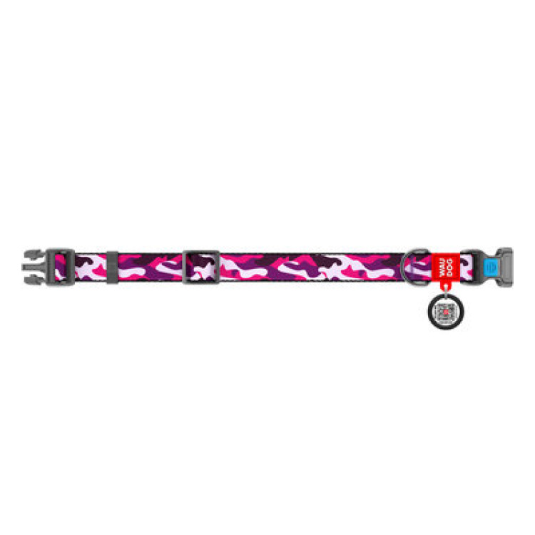 Нашийник WAUDOG Nylon з QR паспортом, малюнок "Рожевий камо", пластиковий фастекс