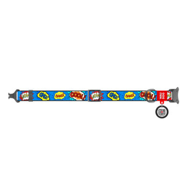 Нашийник WAUDOG Nylon з QR паспортом, малюнок "ВАУ", металева пряжка-фастекс