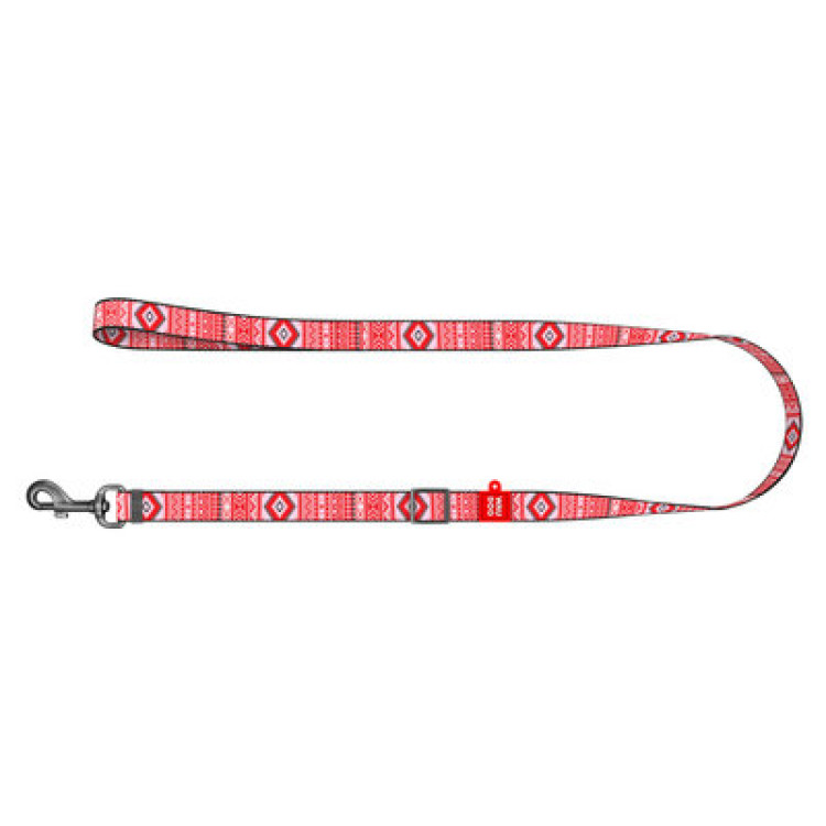 Повідець WAUDOG Nylon, малюнок "Етно червоний", регульований, довжина 152-183 см