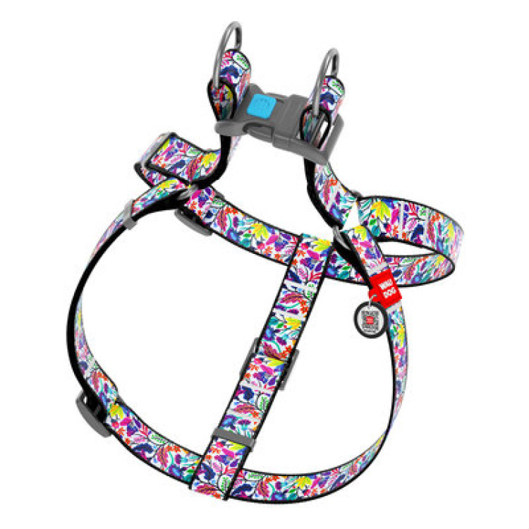 Шлея WAUDOG Nylon з QR паспортом, малюнок "Чарівні квіти"