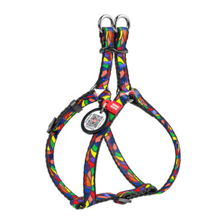 Шлея WAUDOG Nylon з QR паспортом, малюнок "Вітраж" - для дрібних порід собак і котів 28-40 см 10 мм