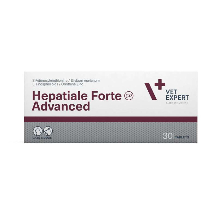 Vet Expert Hepatiale Forte Advanced (Вет Експерт Гепатіале Форте Едвансд) – харчова добавка для котів і собак при підозрі на захворювання печінки та порушення жовчовиділення (особливо при підвищенні активності ферментів АСТ, ЛФ і ГГТ). Рекомендується при гепатиті, отруєнні печінки і холестазі.