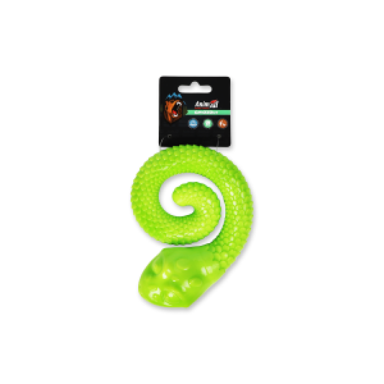 AnimAll (ЕнімАлл) GrizZzly - Змійка, мотиваційна іграшка для собак, 18,4 х15х5, 6 см Не шипить і не кусається, на собачок не кидається) З тильного боку іграшки є поглиблення, в яке можна приховати ласощі, що спонукатиме собаку гризти змійку, а не меблі. Переваги: Змійка виготовлена із термопластичної екологічної гуми. Можна сховати в іграшки ласощі, що допоможе відволікти собаку від шкідливої звички гризти меблі тощо. Можна використовувати як профілактику зубного каменю та підтримку тонусу жувальних м\'язів