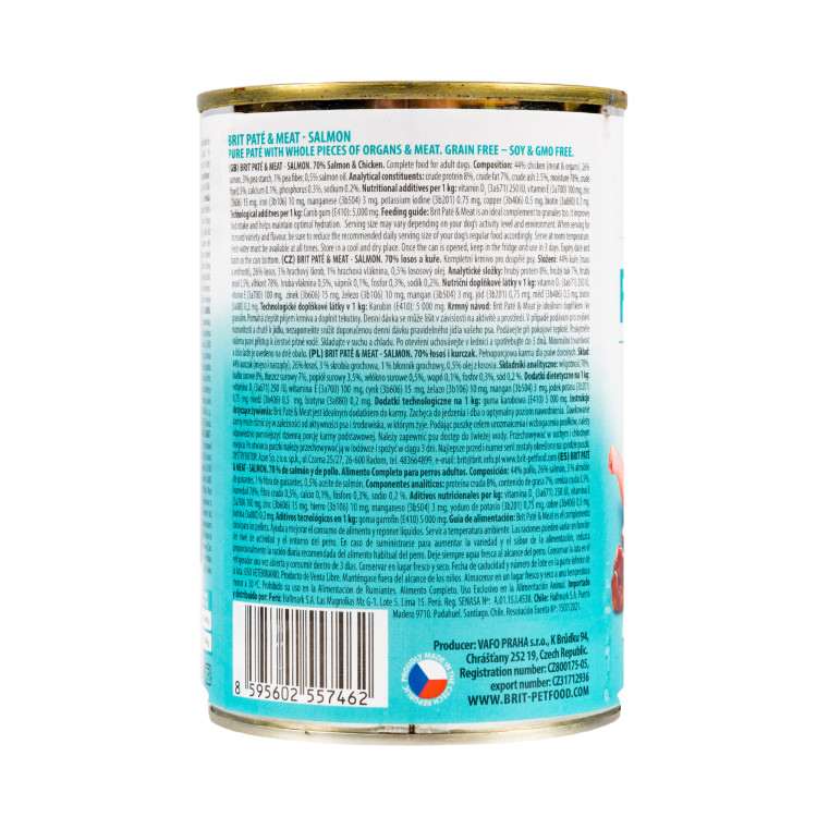 Без штучних добавок корм підкреслює свою натуральність. Унікальне поєднання вітамінів та мінералів сприяє загальному добробуту собаки. Brit Pate & Meat Salmon/Chicken - ідеальний вибір для люблячих господарів, які цінують якість корму та турботу про вихованця.