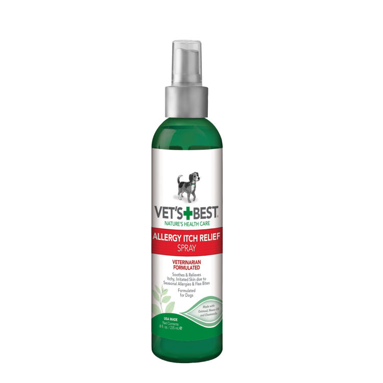 Забезпечте миттєве полегшення свербежу та подразнення шкіри вашого собаки за допомогою спрею Vet\'s Best Allergy Itch Relief Dog Spray.