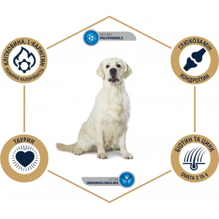 Основне джерело білка – свіжа курка, яка підтримує здорову м`язову масу та активність собак. Advance Dog Labrador Golden Retriever Chicken містить оптимальне поєднання вітамінів та мінералів, важливих для підтримки здоров`я суглобів, імунної системи та органів.