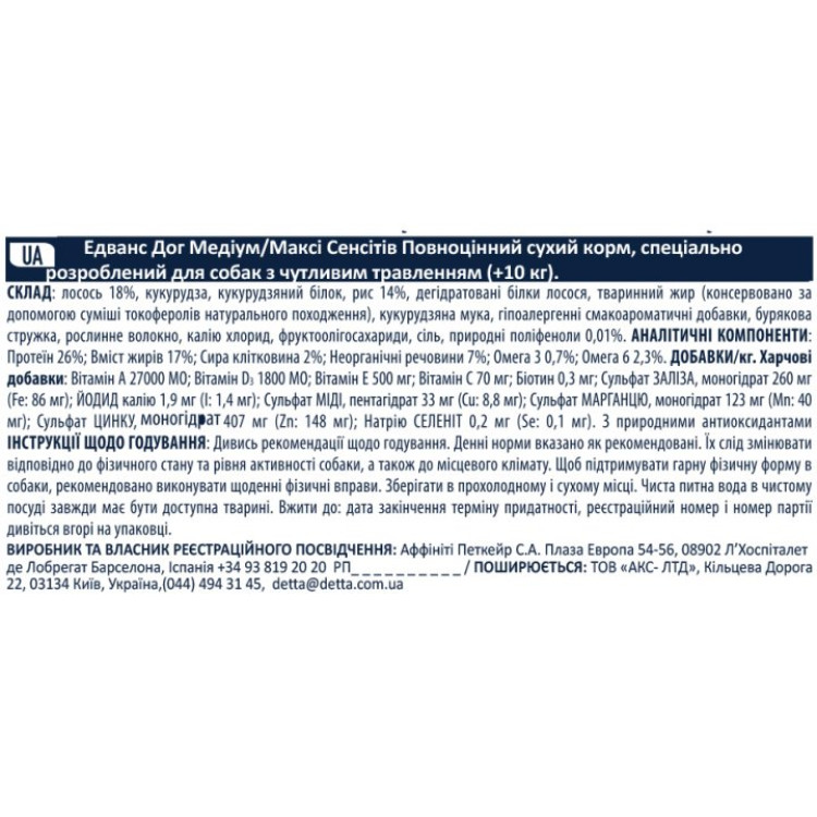 Advance Dog Medii Maxi Sensitive Salmon Rice - це високоякісний сухий корм, спеціально розроблений для собак (вагою понад 10 кг) з чутливою системою травлення з натуральним лососем і рисом. Цей корм забезпечує вашого вихованця збалансованим та легкозасвоюваним харчуванням, що відповідає його унікальним потребам.