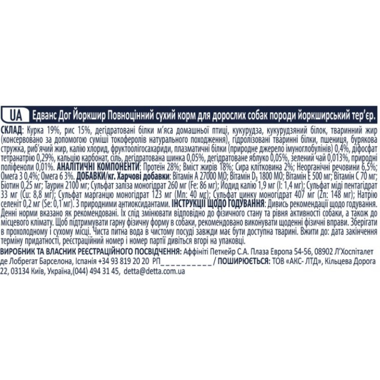 Спеціалізовані компоненти у складі корму підтримують здоров`я шкіри та волосся, сприяють підтримці красивого та блискучого волосся, яке так характерне для цієї породи. Advance Dog Yorkshire також збагачений важливими жирними кислотами для підтримки здоров`я шкіри.